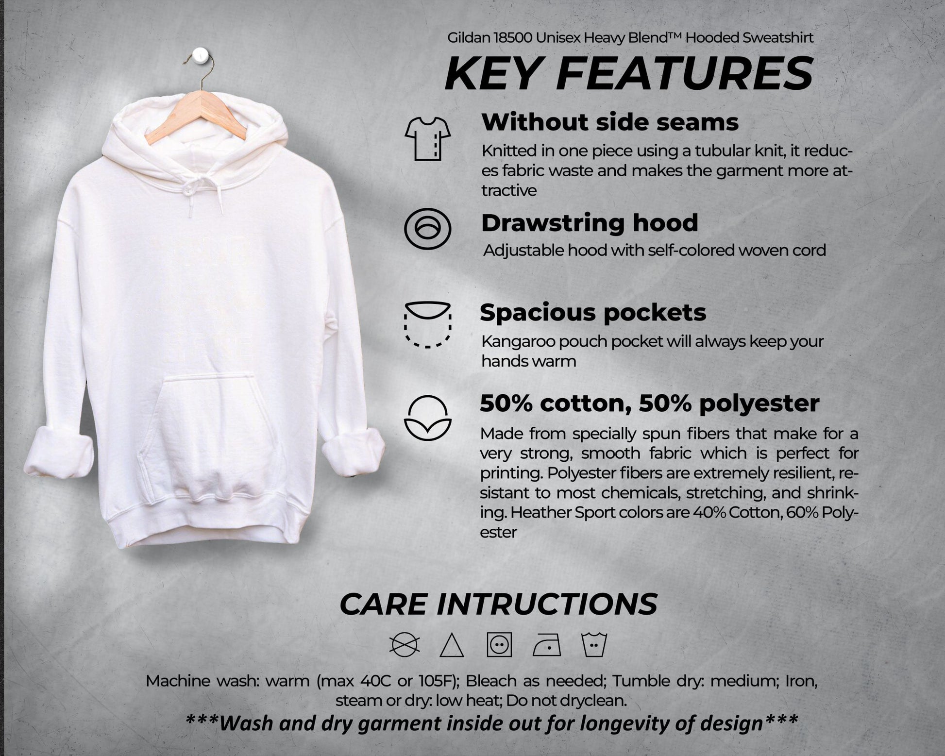 .: Made with a medium-heavy fabric (8.0 oz/yd² (271 g/m²)) that consists of 50% cotton and 50% polyester for that cozy feel and warmth you need in a hoodie.